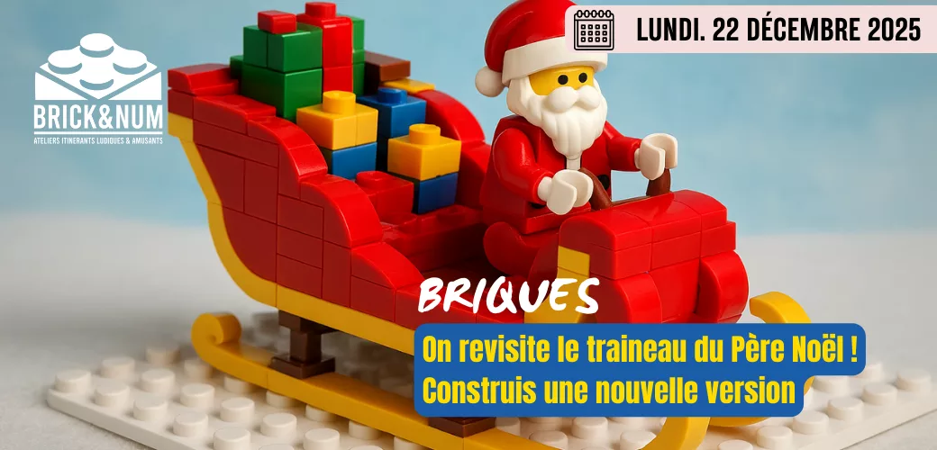 On revisite le traineau du Père Noël ! Construis une nouvelle version de son traineau avec des briques ! Qui sera le plus fun ? le plus original ? Un traineau plutôt classique ? plutôt futuriste ? Viens mettre à l'épreuve ta créativité et ton imagination ! Pendant cet atelier nous allons : - Mettre...