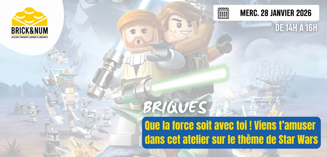 Sortez le Faucon Millenium et autres vaisseaux spaciaux ! Viens participer à un atelier de construction sur le thème de Star Wars ! Au programme : des défis de construction sur notre thème préféré ! Pendant cet atelier nous allons : – Relever des défis – Apprendre des techniques de construction – Échanger tous ensemble...
